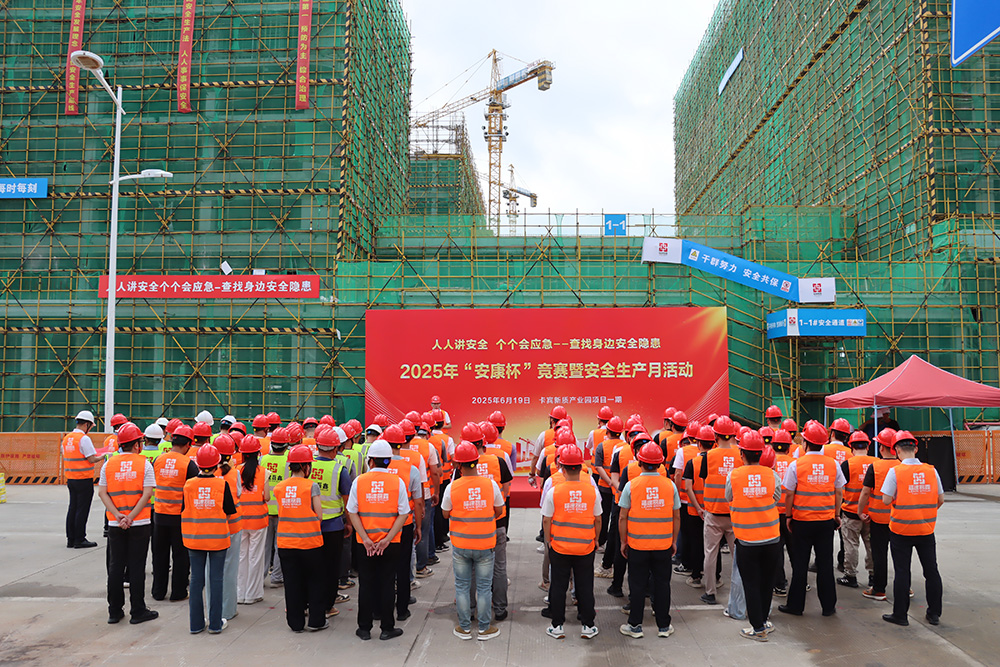 日期:2025/6/19 15:34:54 来源: 作者:今年6月是全国第24个“安全生产月”,为推进在建项目各项安全生产工作,提升全体职工的安全意识,围绕“人人讲安全、个个会应急——查找身边安全隐患”这一活动主题,结合集团安全生产工作的实际,19日上午,福建磊鑫集团在石狮市卡宾新质产业园项目一期项目部举行“安康杯”竞赛和“安全生产月”活动。卡宾集团代表邱国财、福建磊鑫集团党委副书记、总裁卢荣智、集团部分高管、安全生产主要负责人及各项目代表出席本次活动。