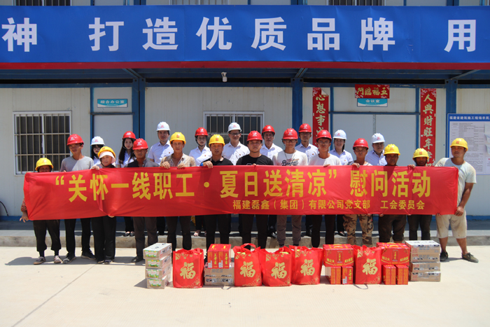 为关心一线施工人员的消暑降温,确保项目的安全稳步生产,7月17日上午,集团公司总支书记、工会主席彭流枝带领着集团公司部分党员来到中益制药项目部慰问工人,为他们送去了降暑药品和清凉饮料。彭主席关切地嘱咐大家在夏季工作过程中一定要注意防暑,并代表集团公司感谢大家在这样酷暑难耐的气温下依旧兢兢业业地奋斗在各自的工作岗位上。