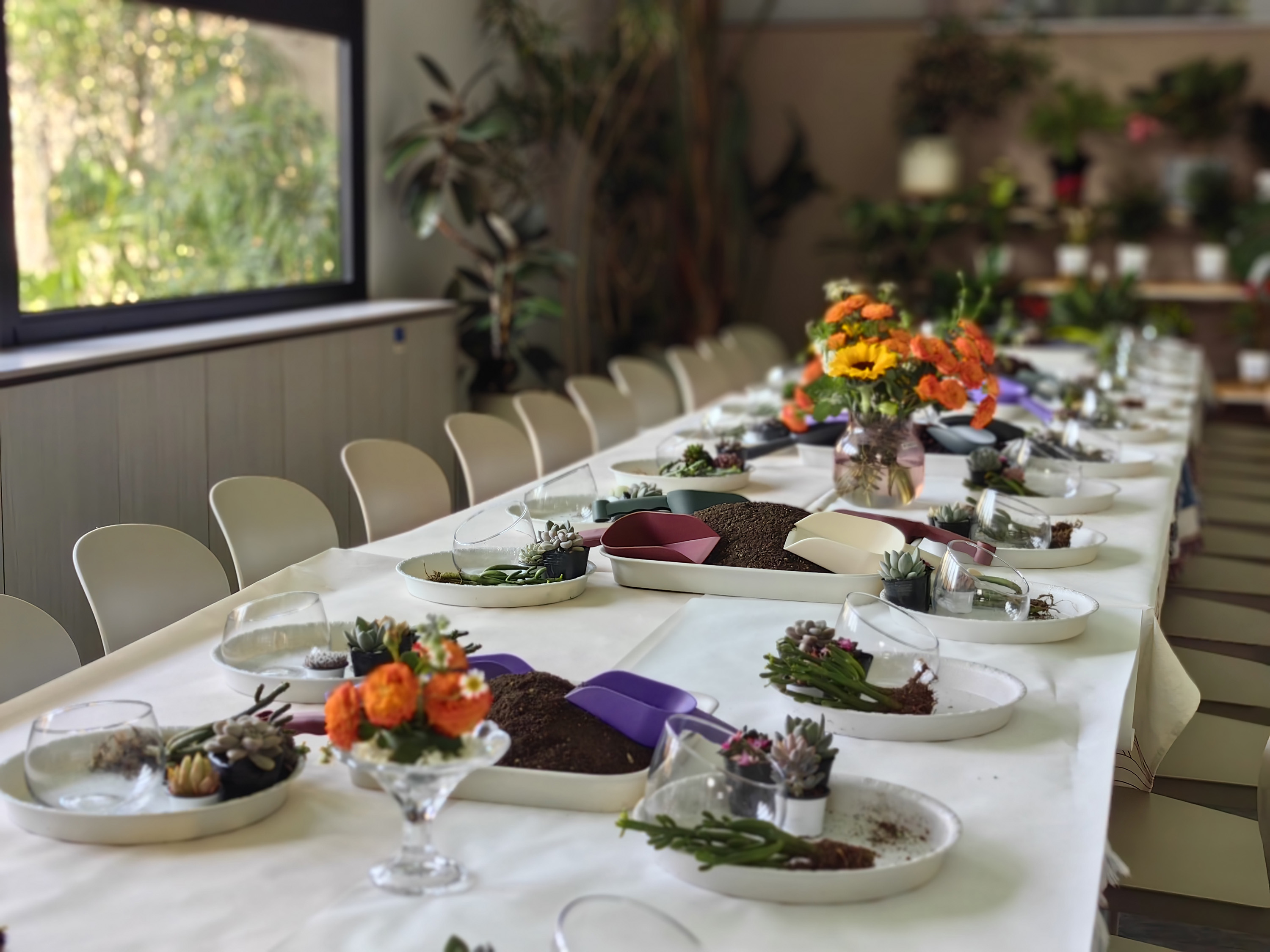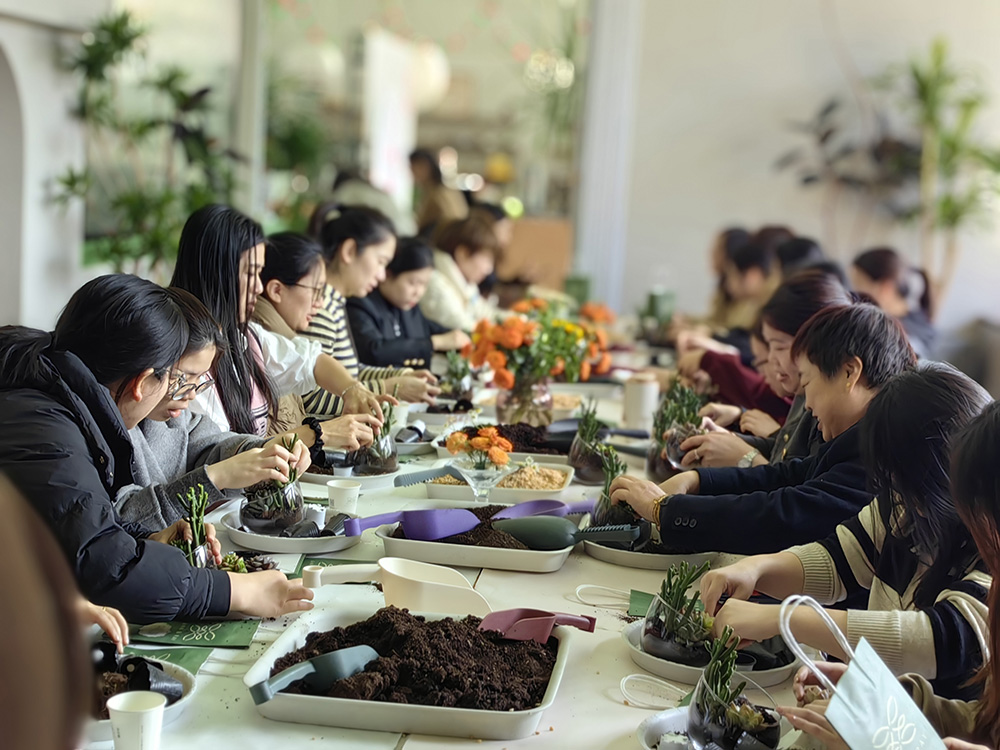 在多肉绿植微景观制作环节。女职工们变身巧手园丁,在专业老师的指导下,将形态各异的多肉植物与精致的花盆、装饰物巧妙结合,打造出一个个充满生机的迷你花园。活动现场欢声笑语不断,大家互相交流制作心得,分享创作喜悦,感受着亲手制作的乐趣和成就感。