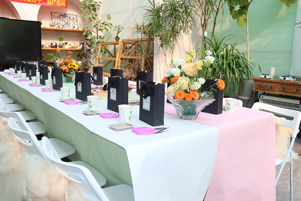活动现场花香四溢,气氛温馨。女职工们分为两组,分别体验了香薰蜡牌和多肉绿植微景观的制作过程。