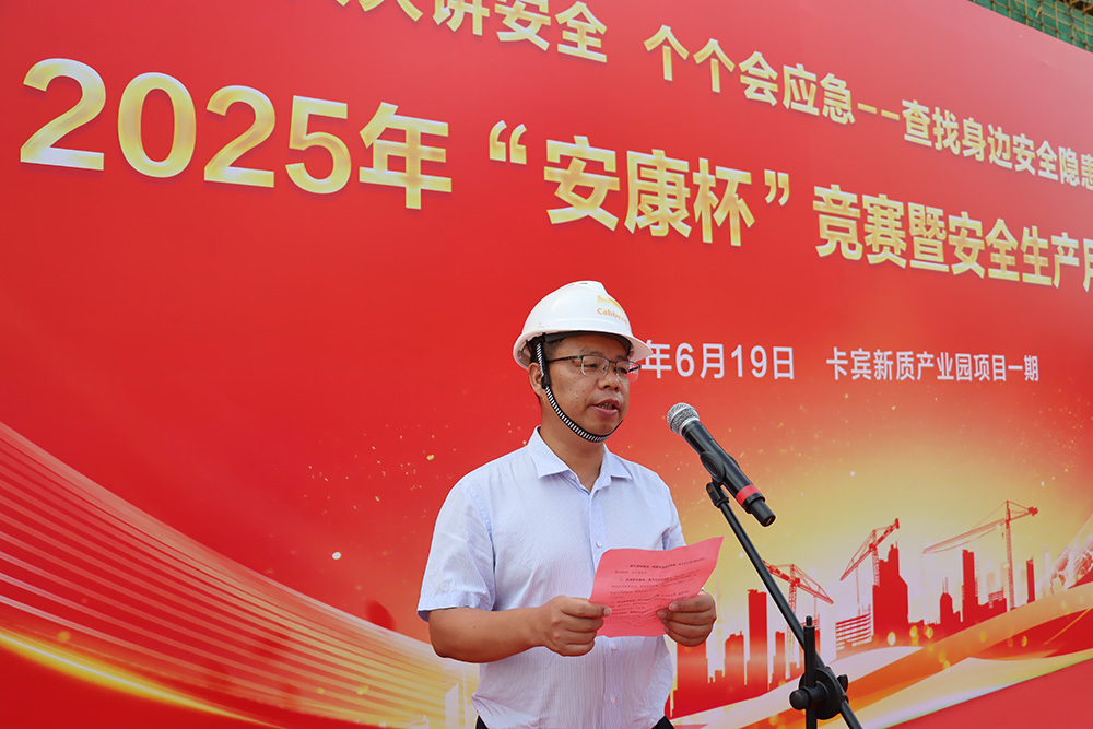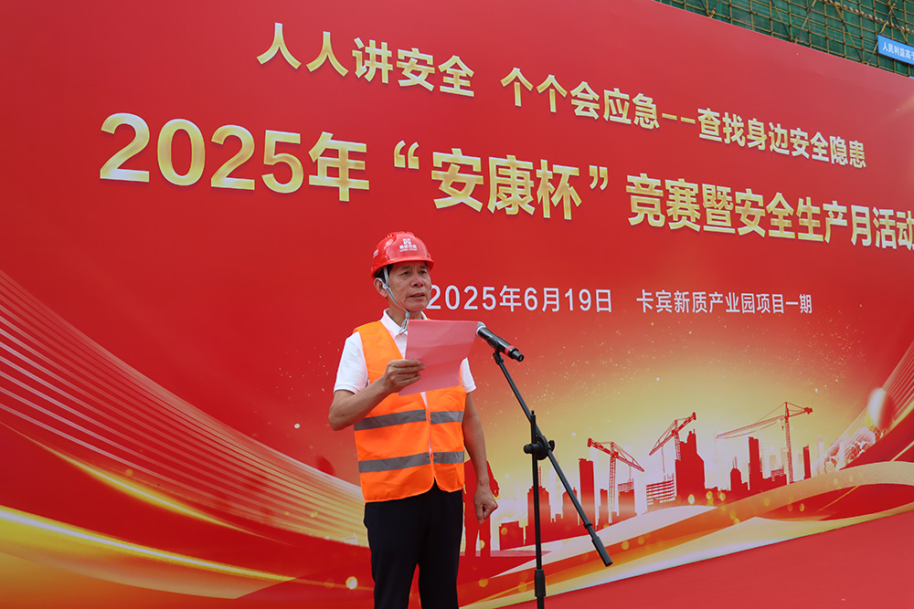 日期:2025/6/19 15:34:54 来源: 作者:今年6月是全国第24个“安全生产月”,为推进在建项目各项安全生产工作,提升全体职工的安全意识,围绕“人人讲安全、个个会应急——查找身边安全隐患”这一活动主题,结合集团安全生产工作的实际,19日上午,福建磊鑫集团在石狮市卡宾新质产业园项目一期项目部举行“安康杯”竞赛和“安全生产月”活动。卡宾集团代表邱国财、福建磊鑫集团党委副书记、总裁卢荣智、集团部分高管、安全生产主要负责人及各项目代表出席本次活动。