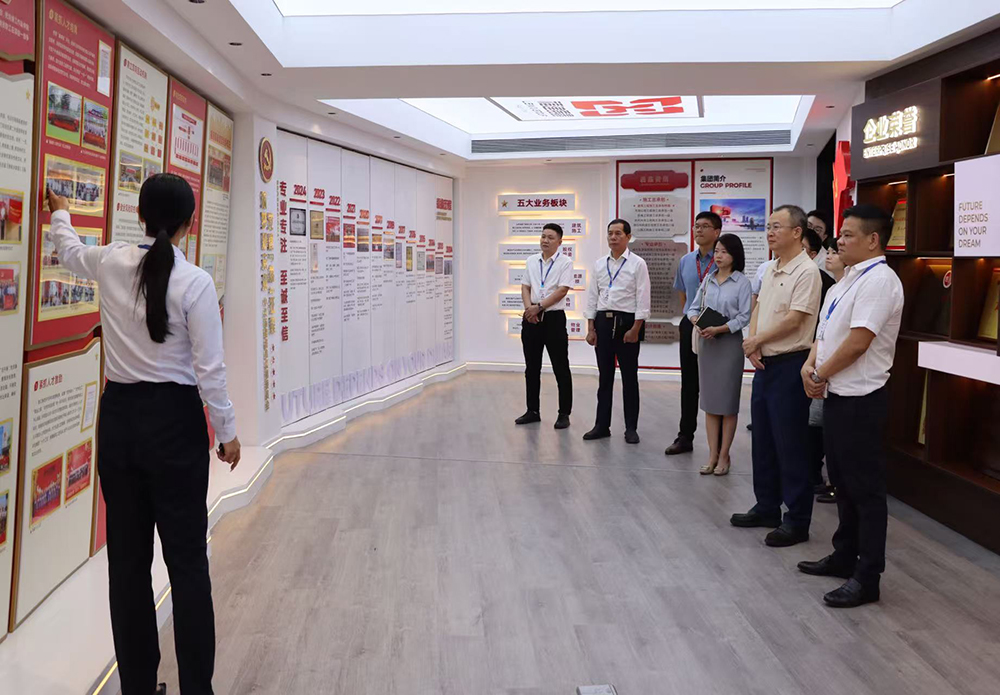 林师禹副行长一行首先参观了集团展厅,通过讲解员的介绍,深入了解了福建磊鑫集团的发展历程、产业布局、核心业务与企业文化,对集团取得的经营成果与综合实力给予了充分肯定。