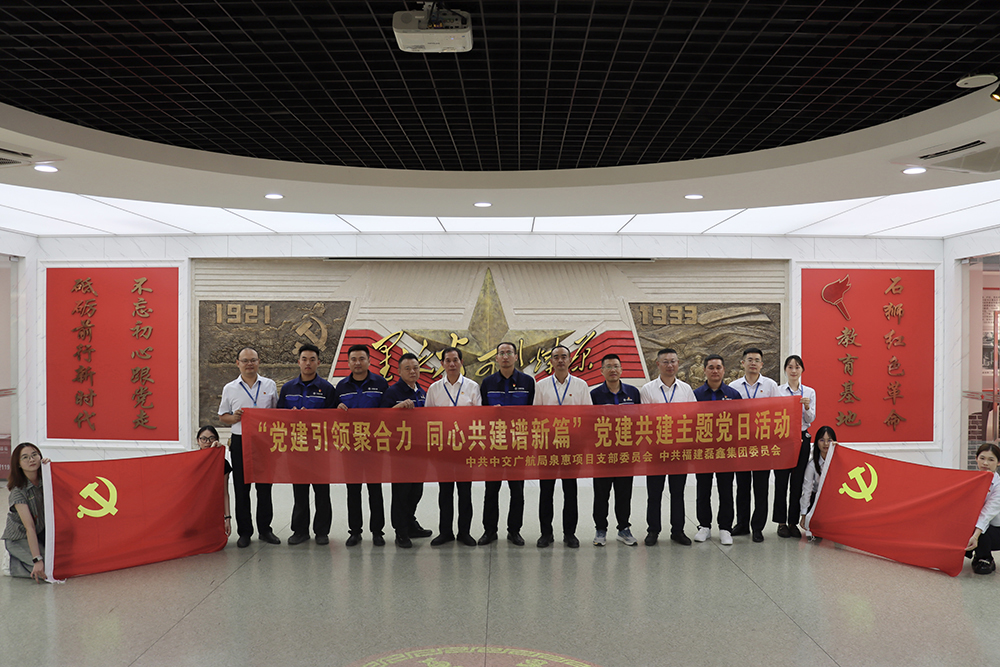 为深入贯彻落实新时代党的建设总要求,积极探索党建工作新思路、新模式,近日,中交广航局泉惠项目党支部与福建磊鑫集团党委联合开展“党建引领聚合力 同心共建谱新篇”为主题党日共建活动。本次活动旨在通过组织共建、资源共享、优势互补,进一步提升基层党组织的创造力、凝聚力和战斗力,共同构建双向促进、共同提高的基层党建新格局。