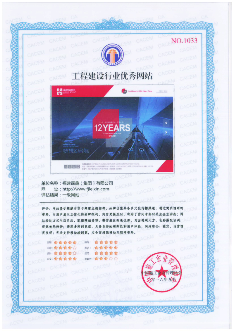 近日,“工程建设行业第二届互联网大会”在北京召开,由中国施工企业管理协会组织开展的“全国工程建设行业优秀网站和先进个人”活动评选结果揭晓。福建磊鑫(集团)有限公司门户网站被评为“2016年度全国工程建设行业一级优秀网站”,这是集团公司第二次获得此荣誉。