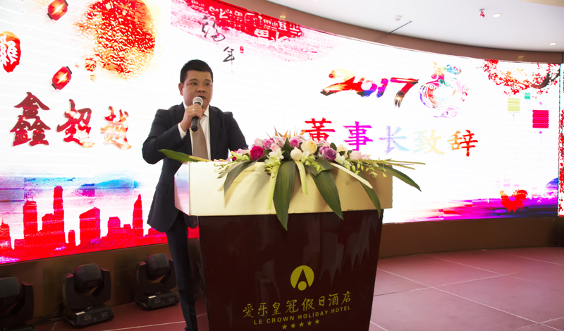 晚宴在一场徇烂夺目的舞蹈中拉开帷幕。之后便是卢董事长的开幕致辞,董事长对一年来辛勤工作员工们,以及给予公司长期关心和支持的每一位员工家属致以节日的问候和诚挚的祝愿。他说,过去的一年集团公司主动适应市场发展新常态,全力推进三年战略目标,经营管理、企业荣誉等方面都实现了不同程度突破。他指出,2017年公司将继续加强团队建设,建立“鑫青年”人才发展平台,朝着公司管理标准化、项目管理精细化迈进,齐心协力、克服困难、勇往直前,主动迎接各种机遇与挑战,“撸起袖子,加油干”,为实现集团三年战略目标而努力奋斗。
