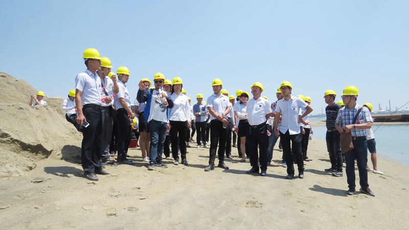 从已完工的项目A1 和A4填海区域到未完工的项目,项目负责人用他形象生动的语言带领众人走进了这个位于古雷镇的填海造陆工程。期间,集团公司为了确保安全生产,投入500万元建立的一条施工通道更是让所有人真切感受到集团公司对安全的高度重视。虽然骄阳似火,但在项目负责人热情的感染下,一行人忘却了炎热,跟随着步伐,深入项目的每一个区域,深刻体验了工地项目的工作和生活。