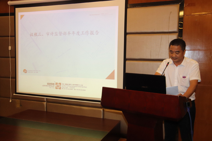 紧接着,审计监督部总监督长做了半年度工作报告。总监督长对上半年各部门工作中的进步表现给予了充分肯定,但在进步的同时,总监督长也逐个部门进行分析,犀利地指出了各部门工作的问题和不足。他表示,集团公司正处在突飞猛进地发展关键时期。各部门一定要学会总结和成长,时刻保持谨慎心理、自强不息、锐意进取。同时,要保持学习意识和危机意识,正视部门的问题,随时改进。