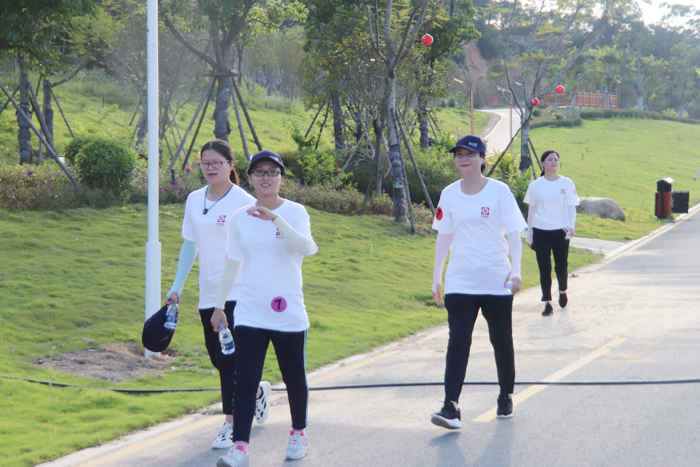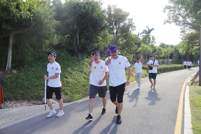 31日下午16:00,在公司楼下,21支队伍身穿定制T恤,头戴统一运动帽,队长举着队旗站在队伍前面,在裁判员的口令下分成四批逐一出发。头顶是炎炎烈日,脚下是漫长的10公里长路。各队一路互相帮助,相互鼓励,你争我赶,奋力前行,不仅收获了汗水、疲倦,更多的是坚持、协作、拼搏。
