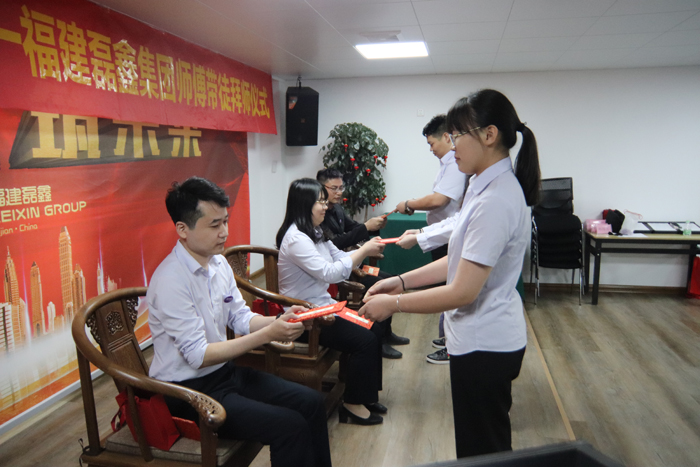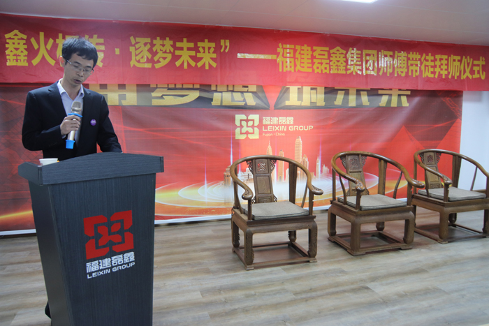 拜师仪式上,首先播放了2021年全新企业宣传片。随后,人力资源部郑经理上台解读了《福建磊鑫集团员工传帮带管理办法》。紧接着,集团公司邱国镖常务副总裁介绍了公司传帮带工作及人才培养体系,并宣读《传帮带师徒协议书》。