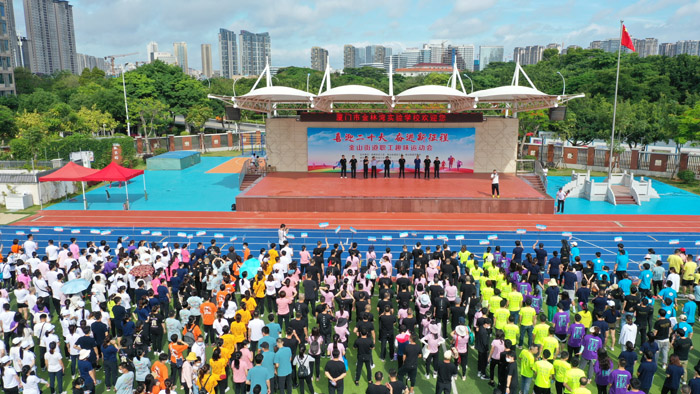日期:2022/6/1 来源:党群办公室 作者:蔡红红5月29日上午,由湖里区总工会、金山街道党工委、金山街道办事处主办的“喜迎二十大,奋进新征程”职工趣味运动会正式开幕。集团工会通过选拔,派出一支代表队参加,队员们以饱满的精神状态投入比赛,充分展现了磊鑫员工的良好风貌和企业的凝聚力和向心力。
