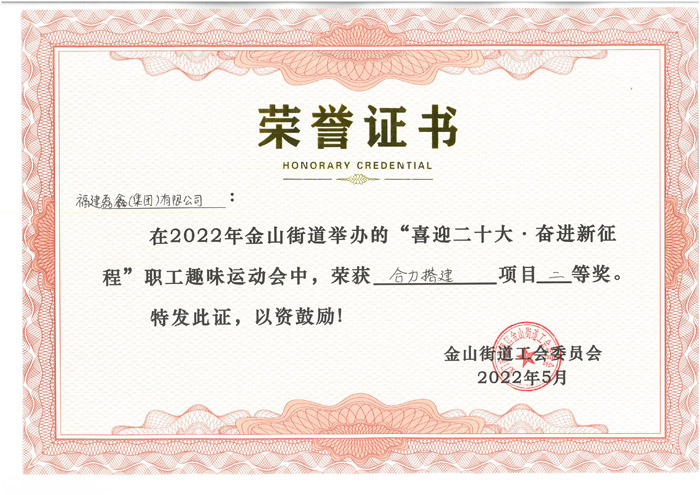 经过激烈角逐,福建磊鑫集团在68支队伍中脱颖而出,荣获合力搭建项目二等奖以及盲人敲锣项目三等奖。